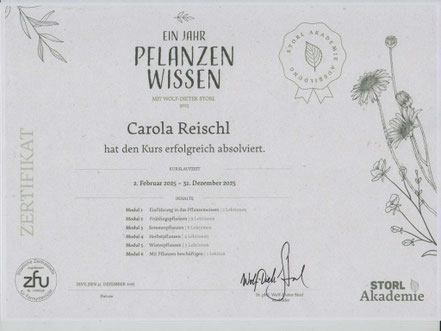 2019 Fortbildung zur Diplomierten Heilkräuter-Praktikerin nach Hildegard von Bingen an der BaBlü-Akademie bei Gabriela Nedoma in Wien.